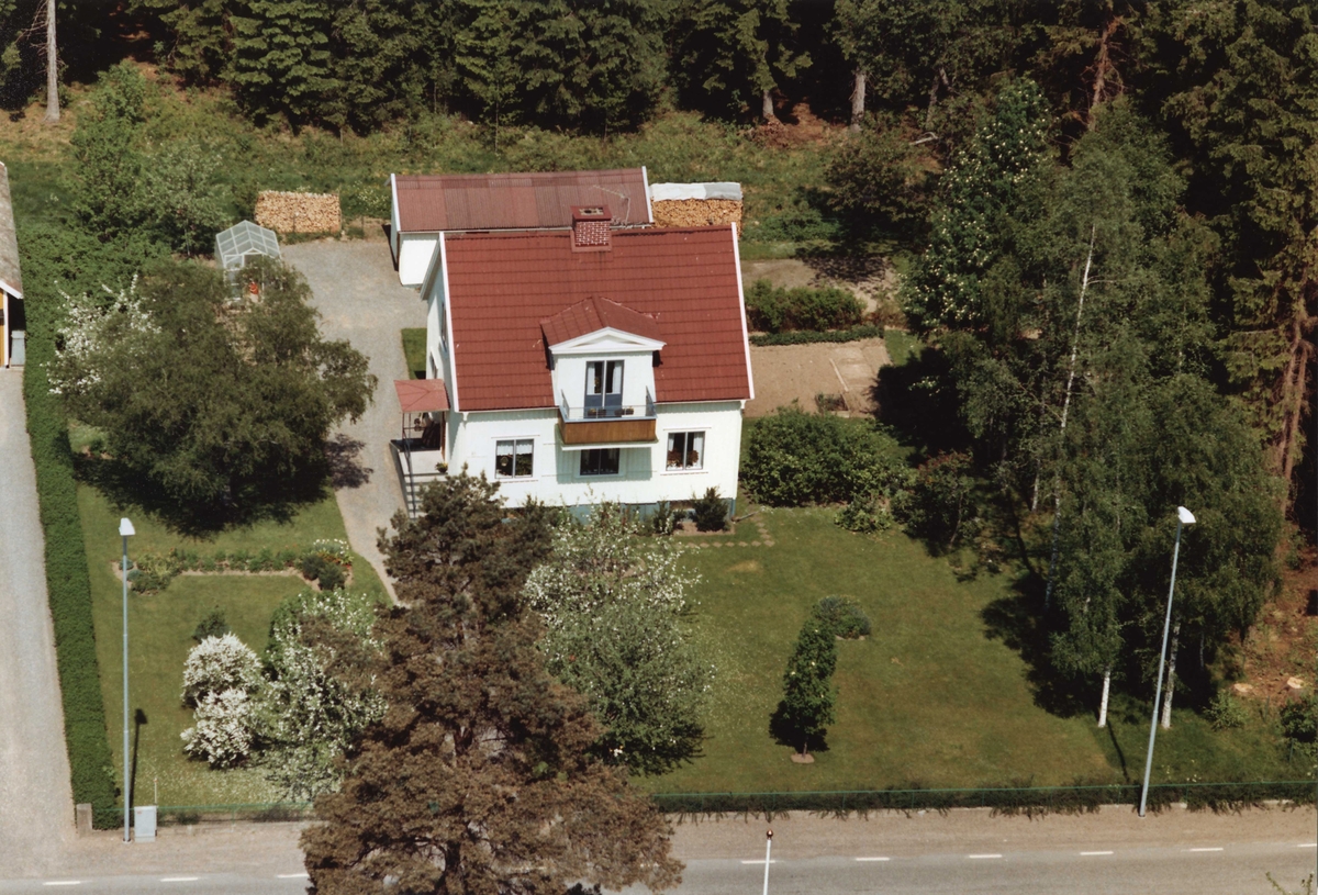 Flygfoto över fastighet på Vetlandavägen 61 i Landsbro, Vetlanda kommun.