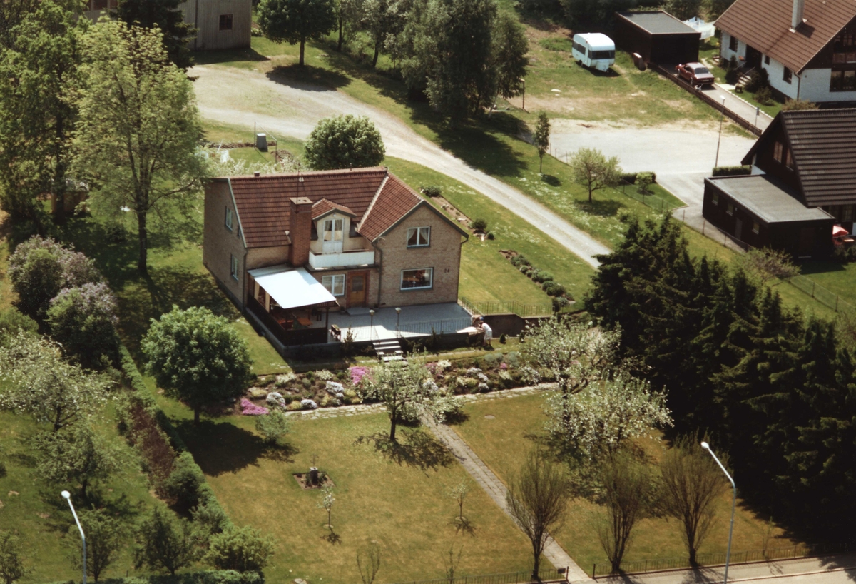 Titel: Flygfoto över fastighet på Vetlandavägen i Landsbro, Vetlanda kommun.