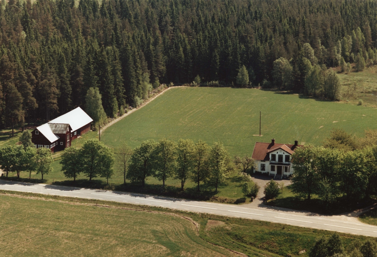 Flygfoto över fastighet Årydström 1 på Vetlandavägen utanför Landsbro i Vetlanda kommun.