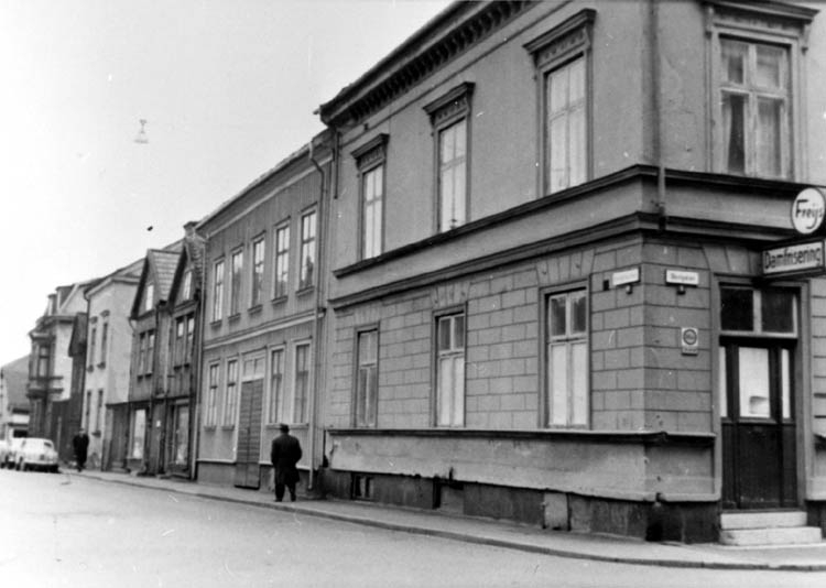 Bostäder och butiker vid Västgötagatan i Jönköping. I hörnet till höger ligger Freijs damfrisering.