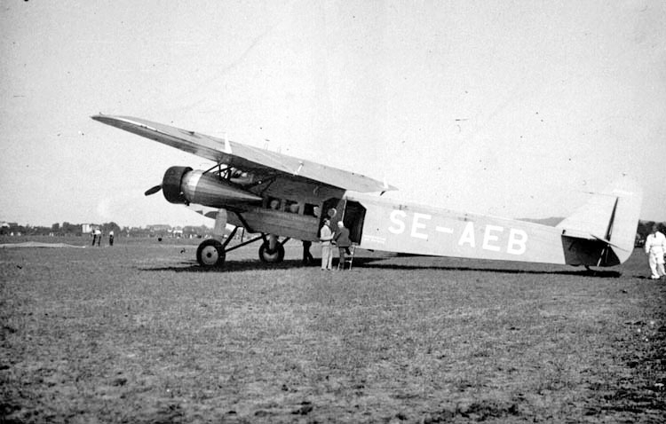 En Focker VII med beteckningen SE- AEB på Jönköpings gamla flygfält i Ljungarum.