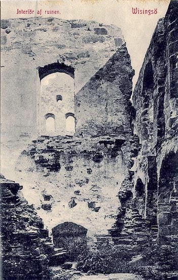 Ett vykort med motiv av Visingsborgs slottsruin på Visingsö.