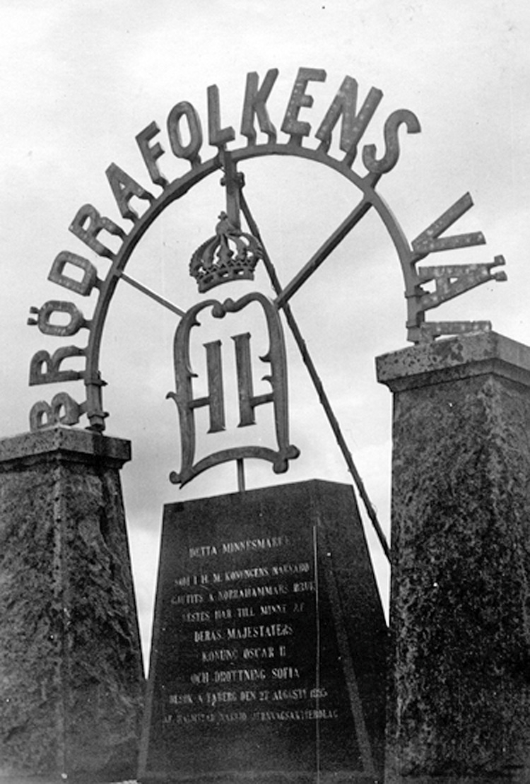 I Taberg uppe på bergets topp finns en Minnesten med gjuten överdel med texten: "Brödrafolkens väl" och Oscar II:s monogram. På stenen inskriptionen: "Detta minnesmärke i H.M. Konungens närvaro gjutits av Norra Hammars Bruk, restes här till minne af deras majestäters konung Oscar II och drottning Sofia besök av Taberg den 27 augustri 1895. Af Halmstad Nässjö Jernvägsaktiebolag.
