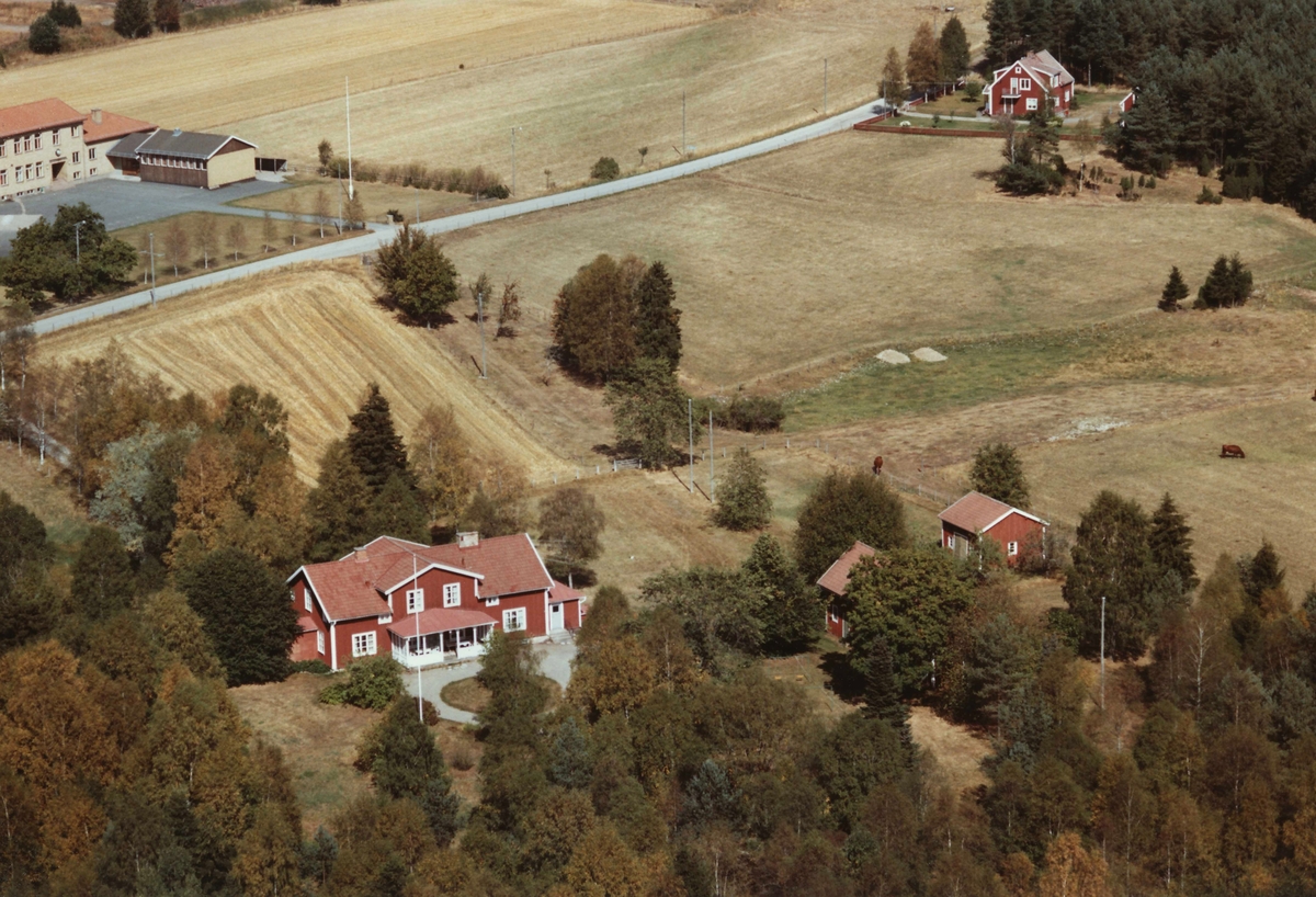 Flygfoto över fastigheter i Bringetofta Sävsjö kommun. Närmast i bild Bringetofta Prästgård längre in i bilden ser man Bringetofta skola.