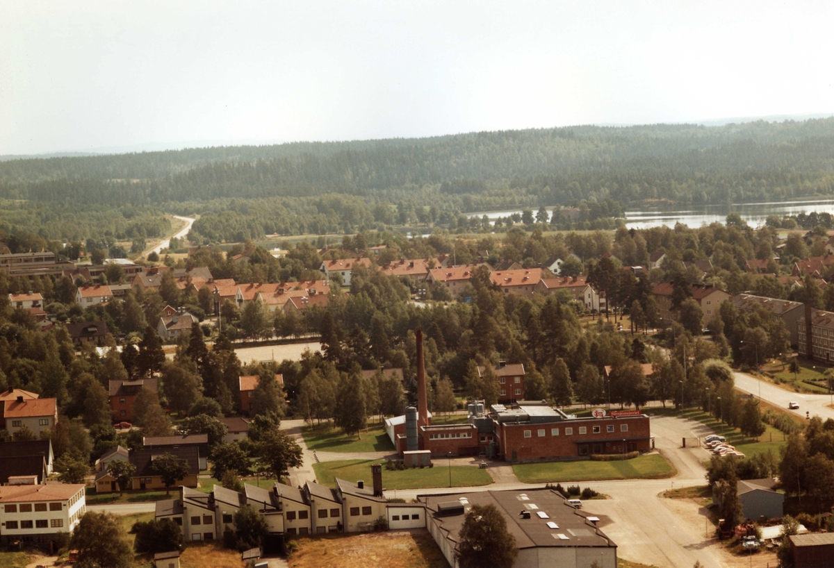 Flygfoto över ett område i Sävsjö i bilden ser man fastigheten Arla Sävsjömeriet Odengatan 6.