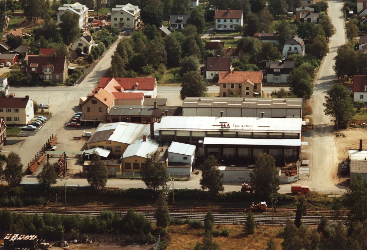 Flygfoto över ett område i Sävsjö och i bilden ser man industrianläggningen VEÅ Ångpannor, Torslundsgatan 2.