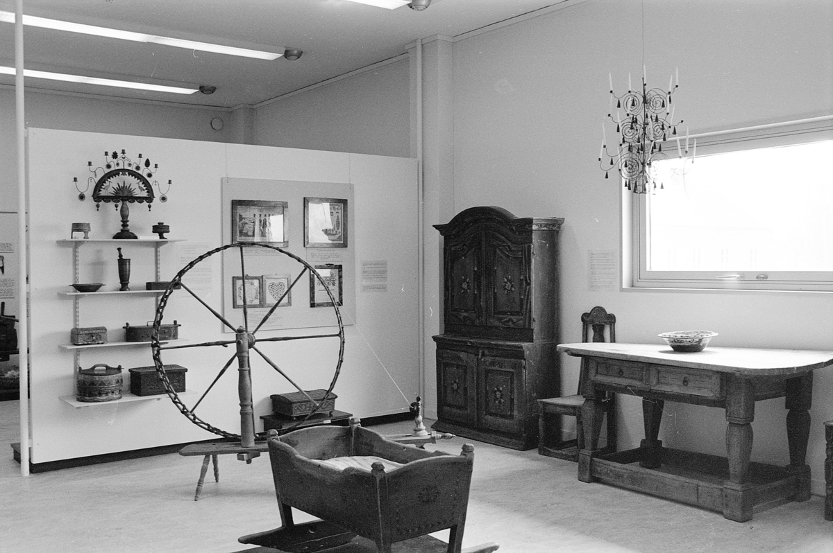 Jönköpings läns museum, utställningar. Folkkonst med föremål tillverkade av den som skulle använda den. Västsmåländska väggbonader som ofta målades av kringresande bonadsmålare.