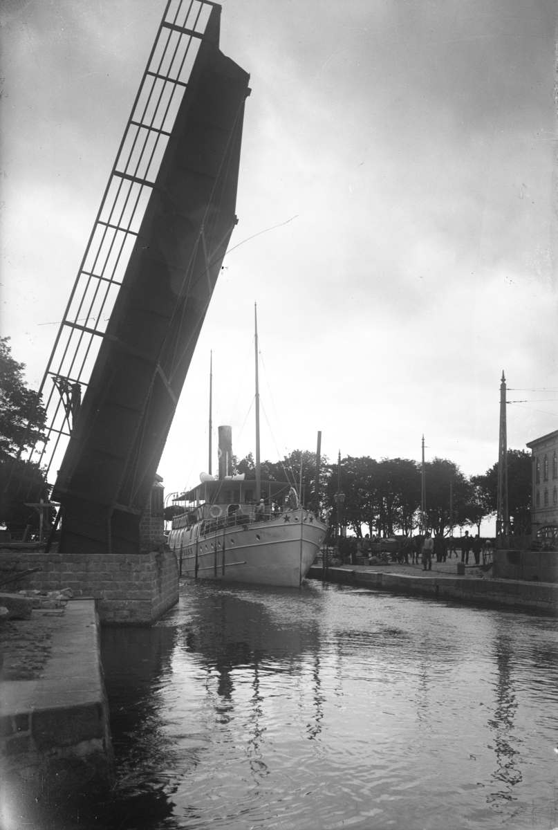 Motala Express passerar den öppna Vindbron över Hamnkanalen i Jönköping.