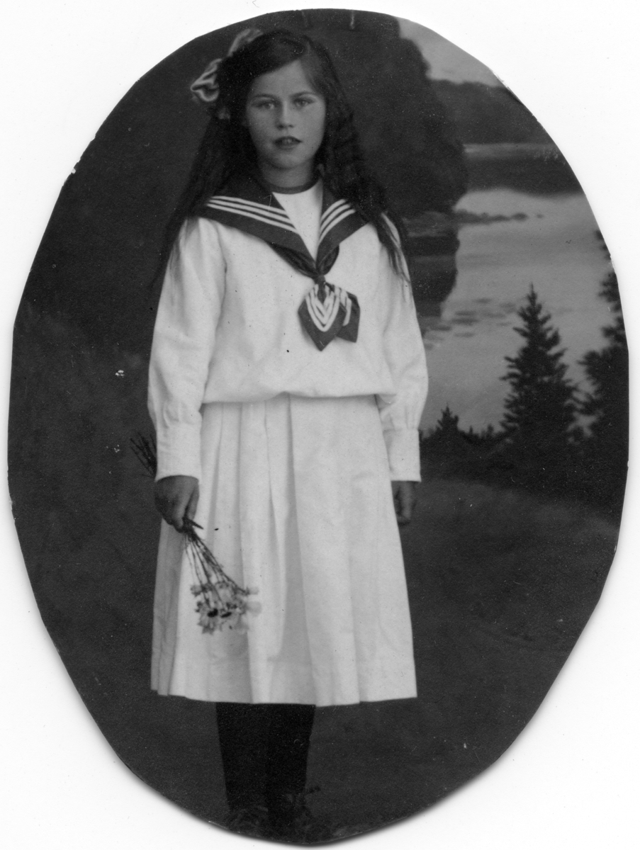 Porträtt av Ingrid Andersson som barn. Hon utbildade sig till sjuksköterska inom psykiatrin och arbetade vid Ryhovs sjukhus i Jönköping.