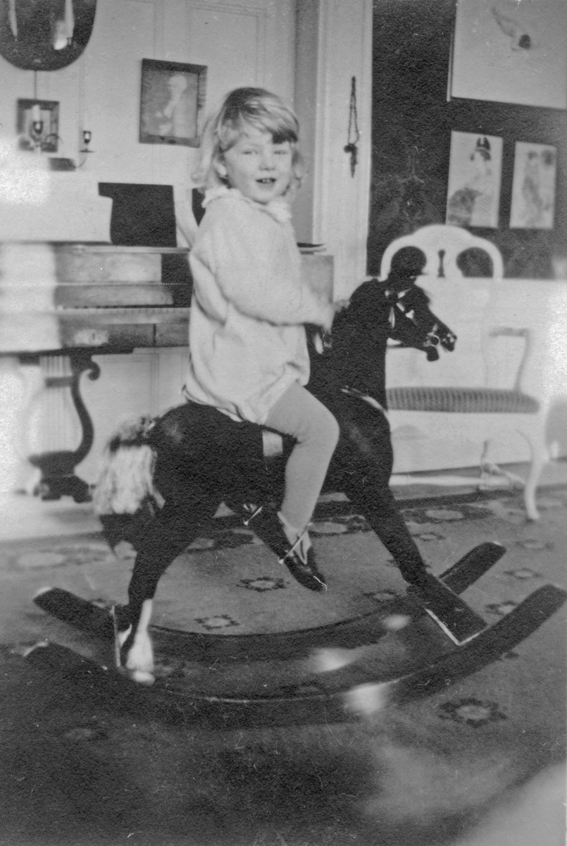 Bengt "Putte" Bauer 2½ år rider på sin gunghäst i familjen Bauers hyreslägenhet i Stockholm.