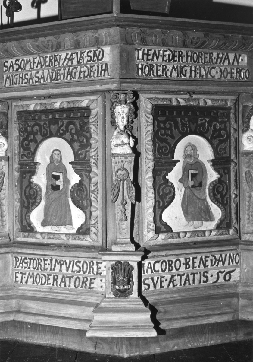 Detalj av gamla predikstolen i Bredaryds kyrka.