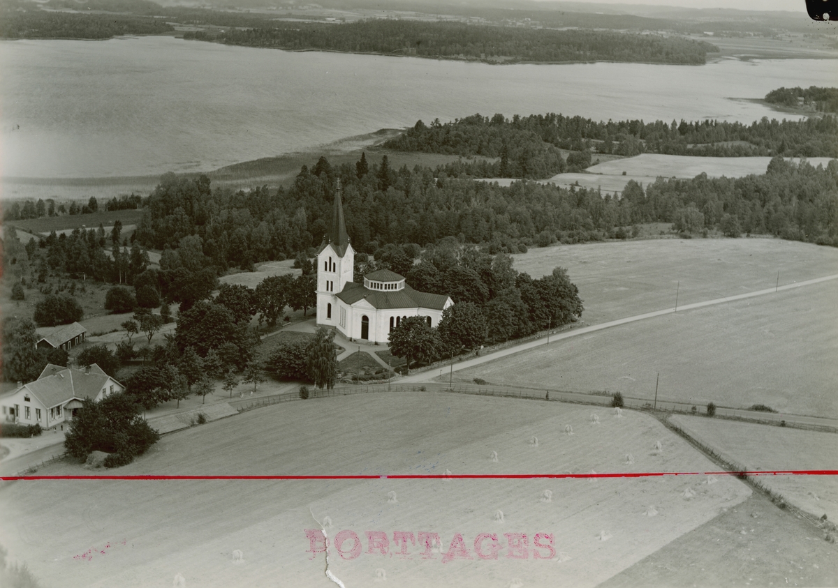 Flygfoto över Öggestorps kyrka i Jönköpings kommun. Nr C 1820
