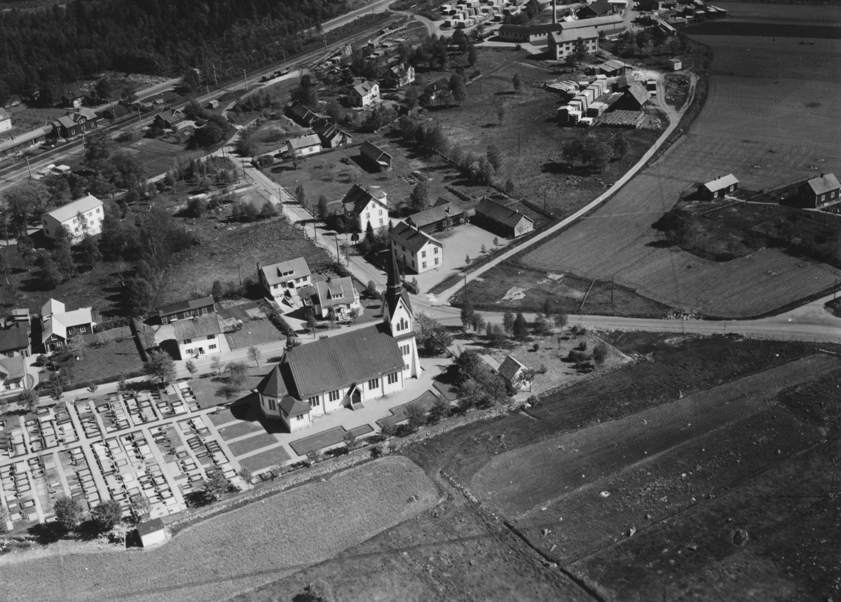 Flygfoto över Stockaryds kyrka i Sävsjö kommun, Jönköpings län. Nr M 976