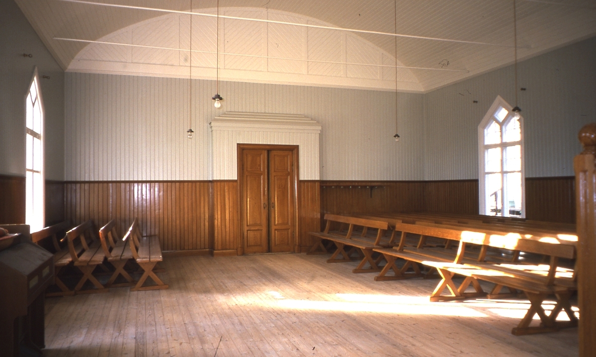 Interiör från Sionskapellet i Sommen, Säby socken, Tranås kommun.