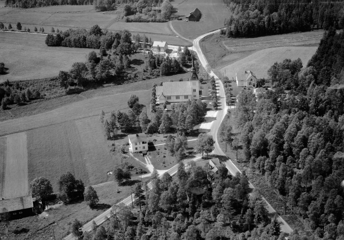 Flygfoto över Valdshults kyrka i Gislaved kommun, Jönköpings län. Nr 1108/1961