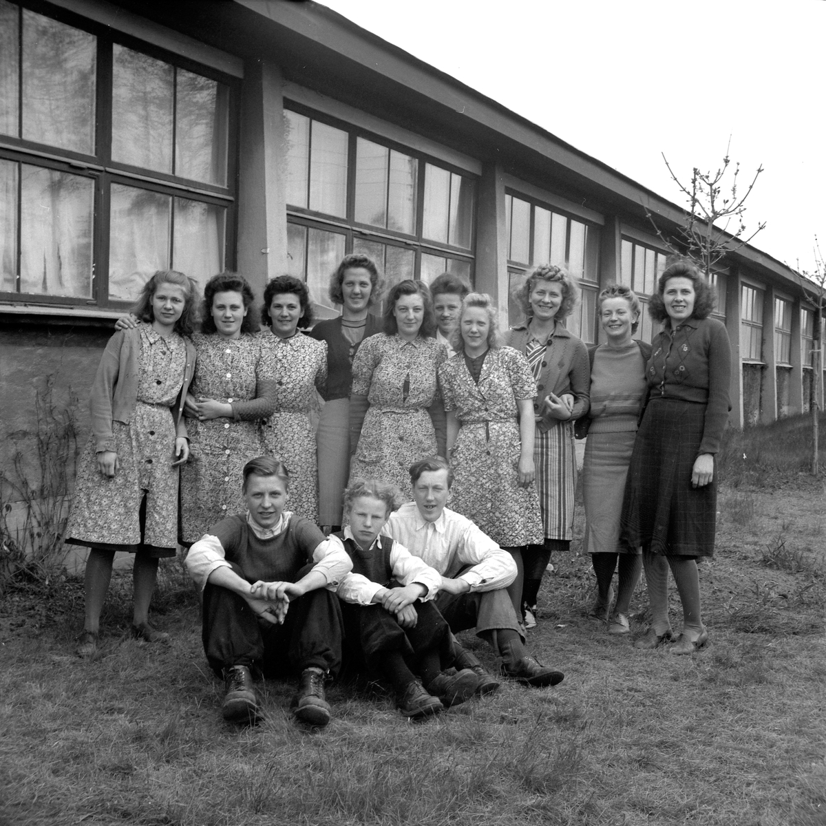 Anställda utanför Ekmans kartongfabrik på Kämpevägen i Jönköping.