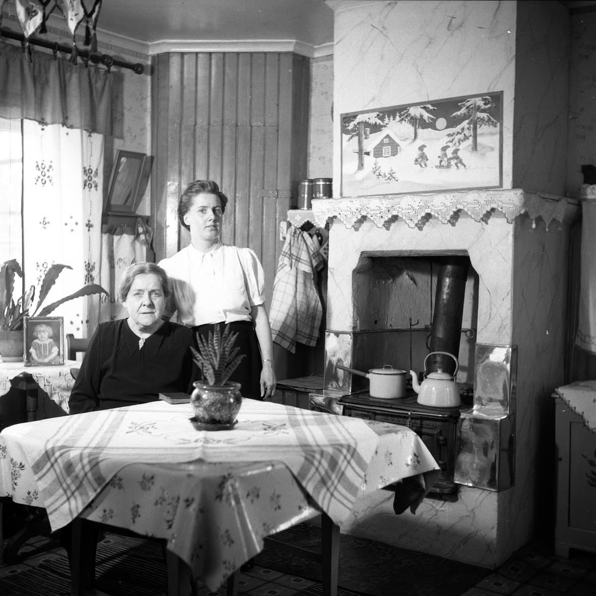 Trångboddheten i små lägenheter var stor i Jönköping. Här två kvinnor i ett rum, kanske kök.