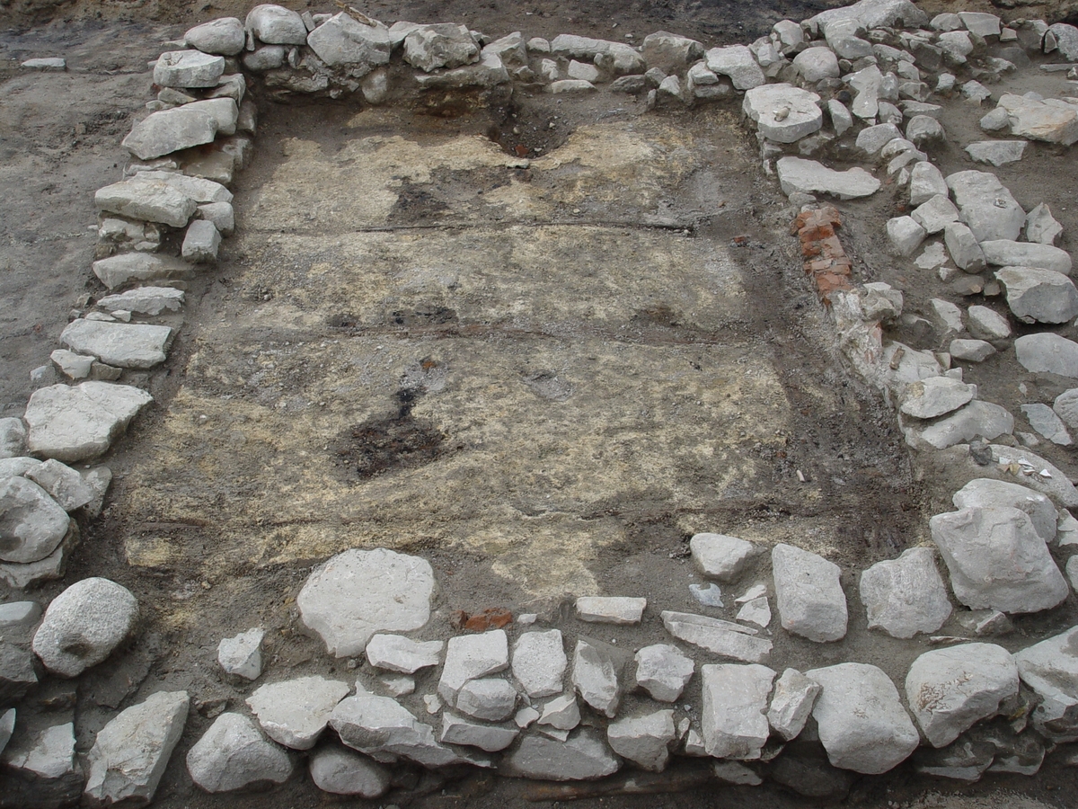 noggrant med rustbädd av stockar som lagts ut i stenväggarnas längdsriktning. Väggarna var 70–80 centimeter tjocka och välmurade. Sidan ut mot gården har varit kalkputsad och lyst vit. Golvet var noga isolerat i flera skikt med utnyttjande av såväl krossade gjutformsfragment som lager av tät lera. Det som förvarades i källaren skulle inte skadas av inträngande markfukt. Källaren har varit i bruk under 1700-talet.