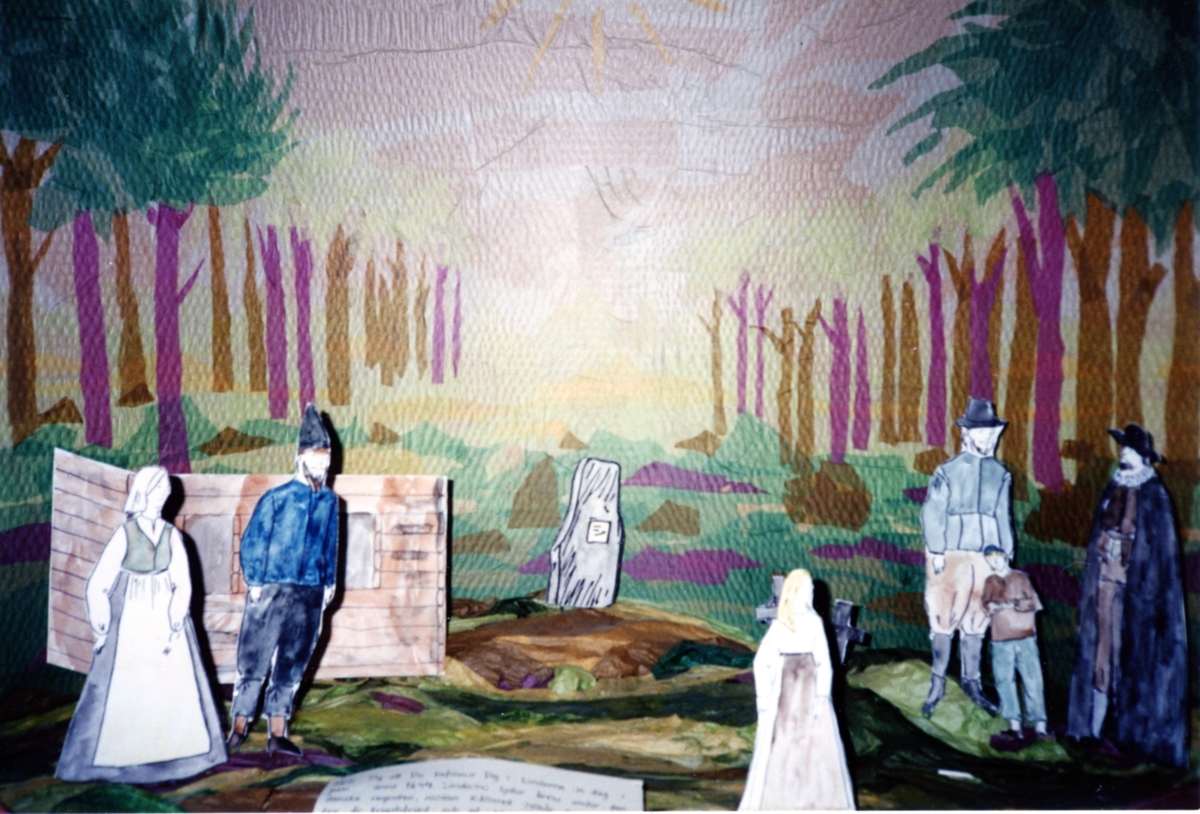 En uppmålad scenmodell inför Bygdespelet "Brandskatten", okänd lokal 1986/87. Relaterat motiv: A3247.