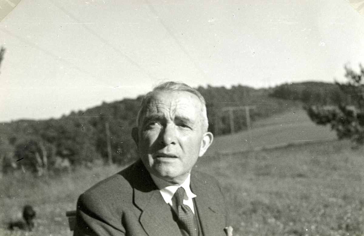 Carl Krantz (1880 - 1956) finklädd i kostym, Stretered okänt årtal. Carl var skomakare samt lärare och undervisade vid Stretereds skolhem 1917 - 1947.