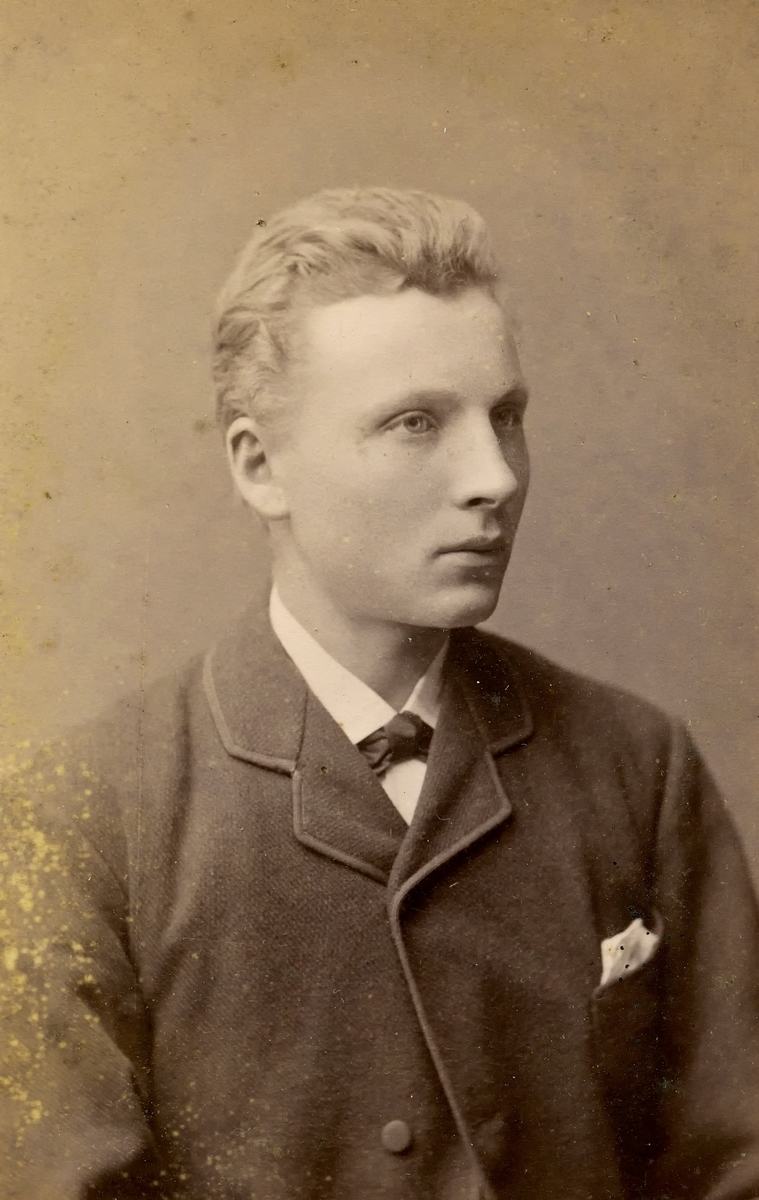 Ateljéporträtt av August Fredriksson, född 1863 Livered "Målarns", avliden 1946 i Livered. Gift 1886 med Hilda Andersdotter, Livered. August var målare och bonde.