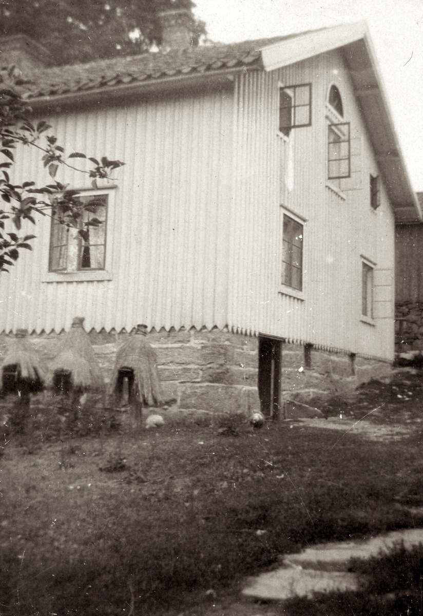Gavel mot Stretered tillhörande Livered 1:15 "Majas" (Streteredsvägen 36), cirka 1920. Observera bikuporna!