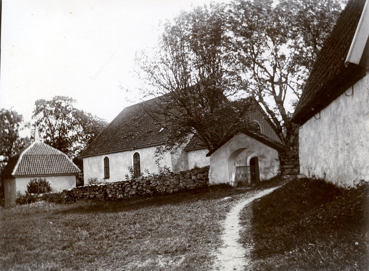 Kållereds kyrka cirka 1910 - 1915. Innan kyrkogårdsutvidgningen 1923/24.
