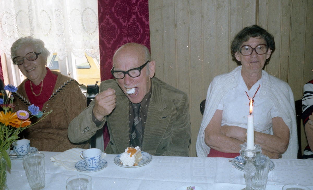 Hobbyverksamhet för pensionärer, 1970-tal. Utflykt till Resa Två Skyttlar, hotell och restaurang i Örby. Från vänster: två okända personer samt Inez Franzén som sitter till bords.