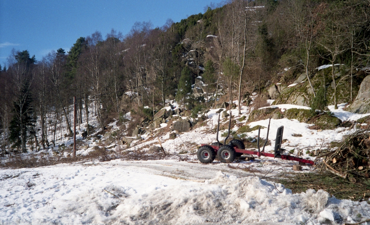 En arbetsmaskin vid röjningen inför byggandet av den nya Hallenskolan, mars 2010.