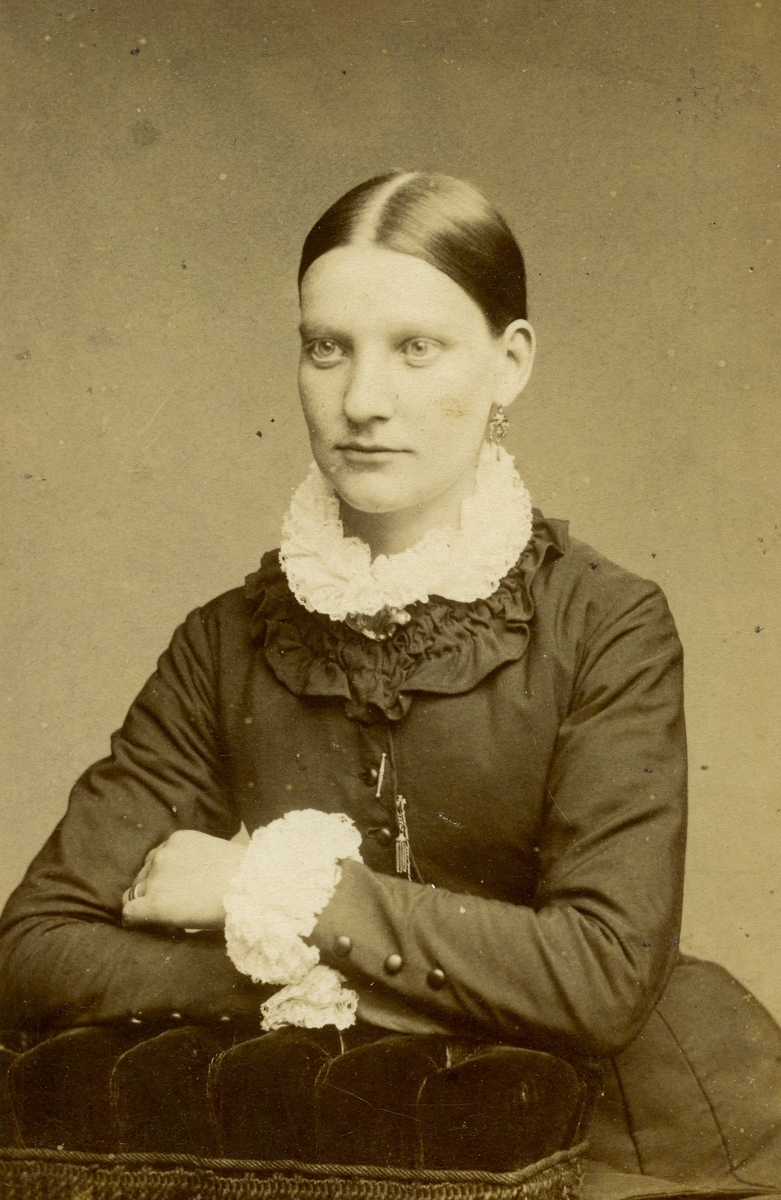 Ateljéporträtt av Emma (född Andersdotter 1854 i Landvetter, död 1931 i Livered) cirka 1880. Gift med Karl Andersson, Livered "Majas".