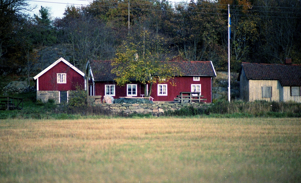 Hembygdsgården Långåker 1:3, cirka 1980 - 1985. Till höger skymtar Långåker 1:2 "Davids", "Derras".