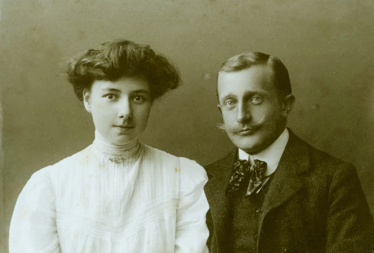 Förlovningskort cirka 1907 av Davida Karlsson (född 1888 i "Majas" Livered, död 1931 i Livered) och David Johansson (född 1882 i Heljered Mellangård, död 1953).