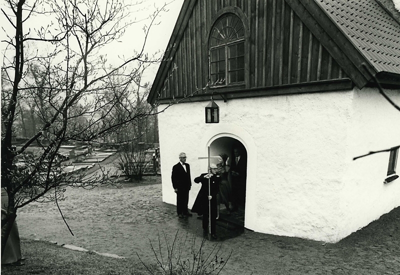 Återinvigning av Kållereds kyrka 2/5 1976. Till vänster står kyrkvaktmästare Karl Olofsson.