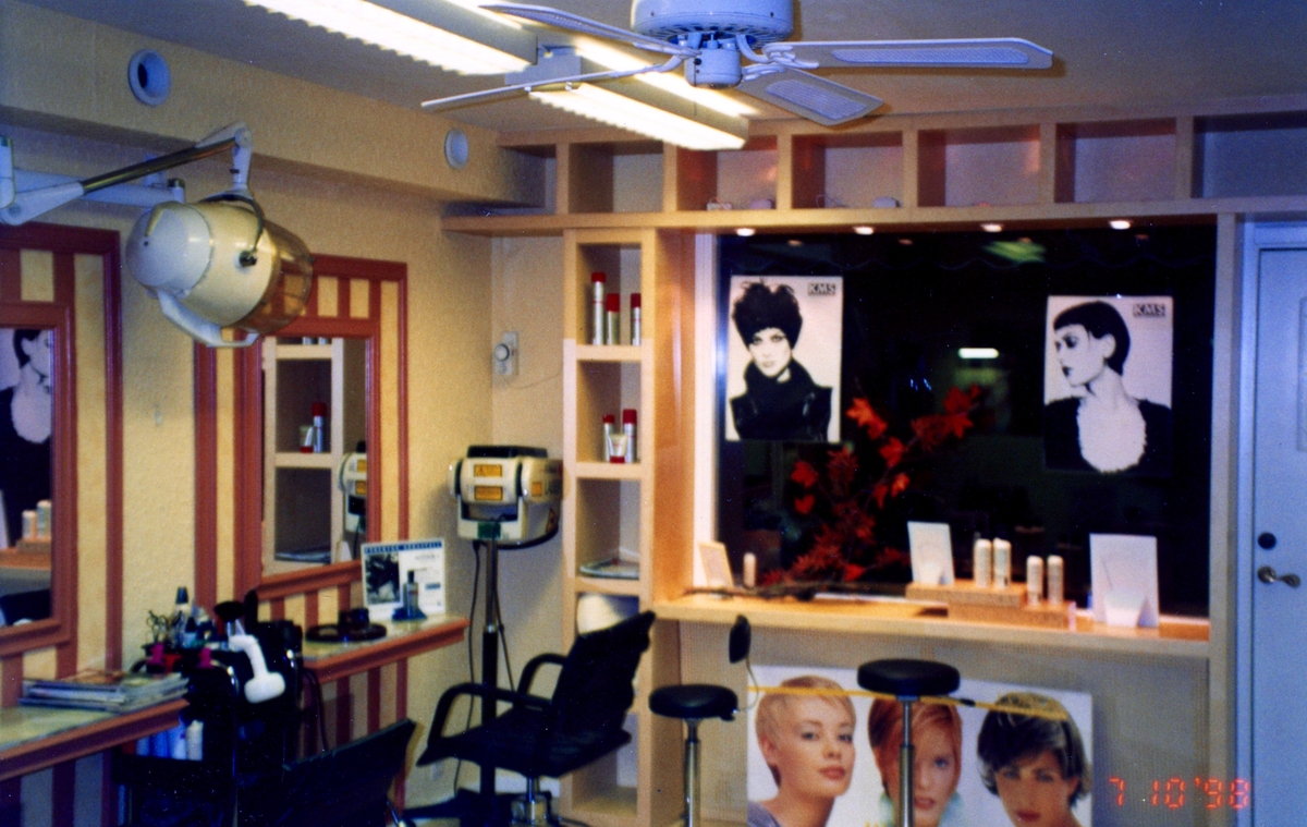 Interiör vid renoveringen av Hårmakarna på Våmmedalsvägen 10 i Kållered, 1990-tal. Ägare var Leif och Lena Westerberg.