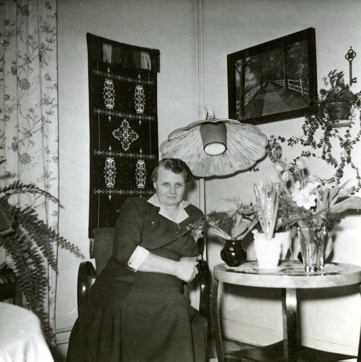 Selma Kristiansson (född 1895 i Grangärde, död 1968 i Uddevalla) firas då hon fyller 60 år i Stretereds personalbostad år 1955. Hennes man Hjalmar Kristiansson var ladugårdsskötare/vaktmästare vid Stretereds vårdhem.