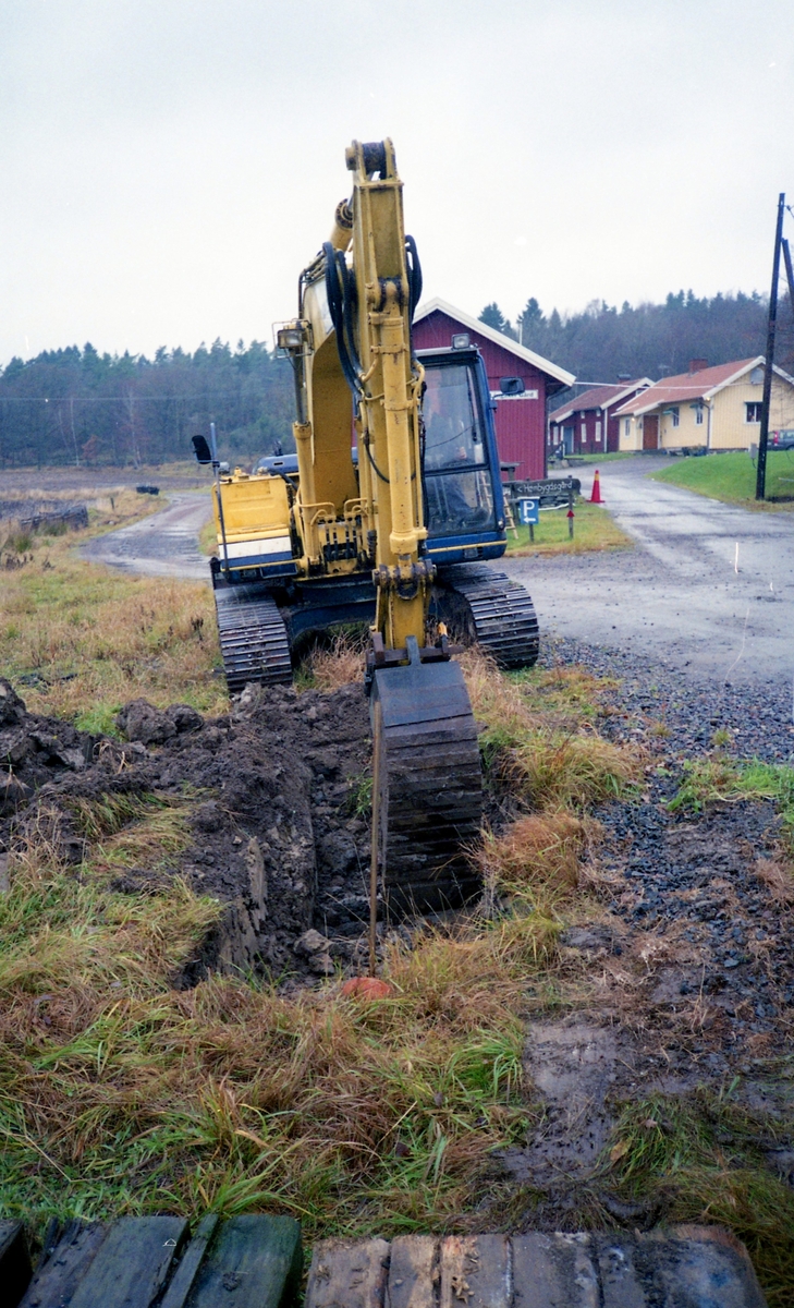 Stefan Johansson från Labacka grävmaskin, kör grävmaskin och anlägger kommunalt vatten till Långåker Hembygdsgård i november 2009.