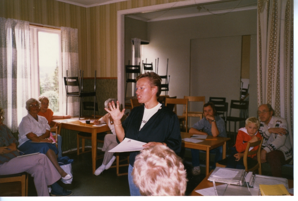 Manusgenomgång inför Bygdespelet "Brandskatten" i A-salen, Kållereds Kommunalhus (Streteredsvägen 3) 1986/87. Relaterade motiv: A3186 - A3251.