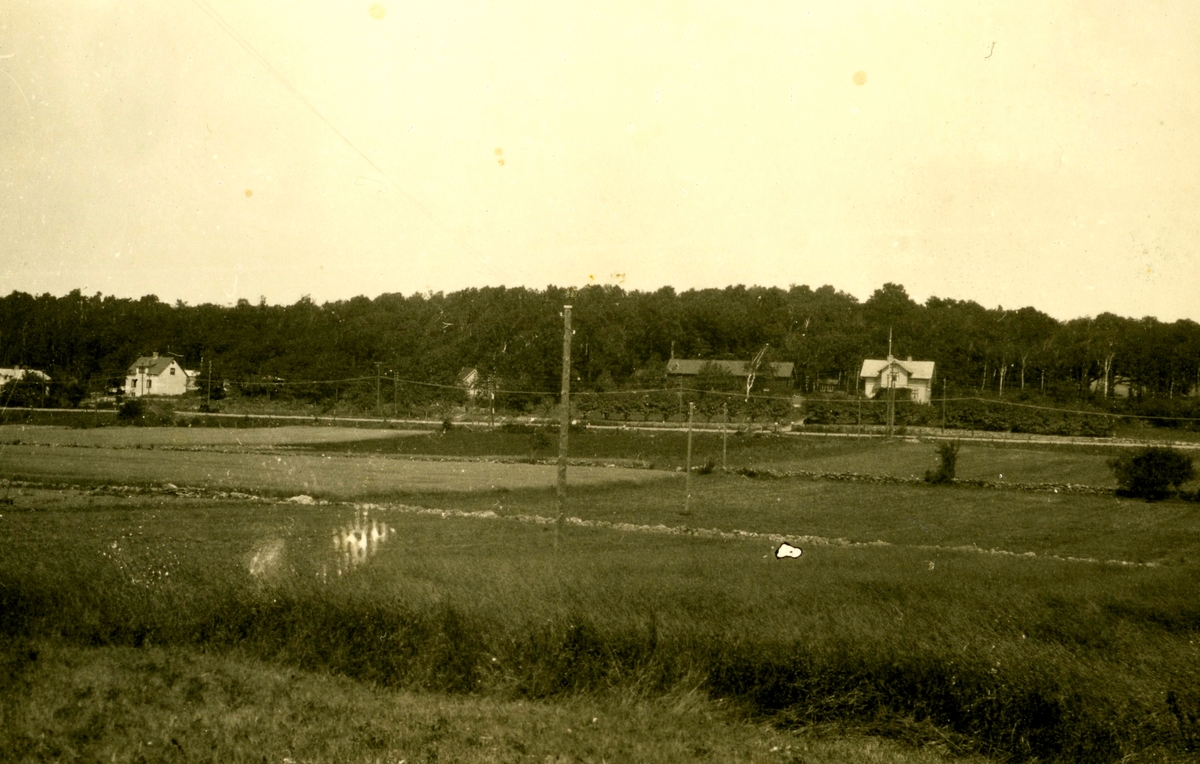Järnvägen går framför Kållereds Stom 1:3 "Nygård" som ses till höger, 1940-tal. Gården låg utmed nuvarande Gamla Riksvägen, söder om Kållered centrum. Det var ett boningshus med två lägenheter, byggt omkring 1910, rivet i början av 1970-talet. Johan och Karolina Gustafsson byggde husen och brukade gården.