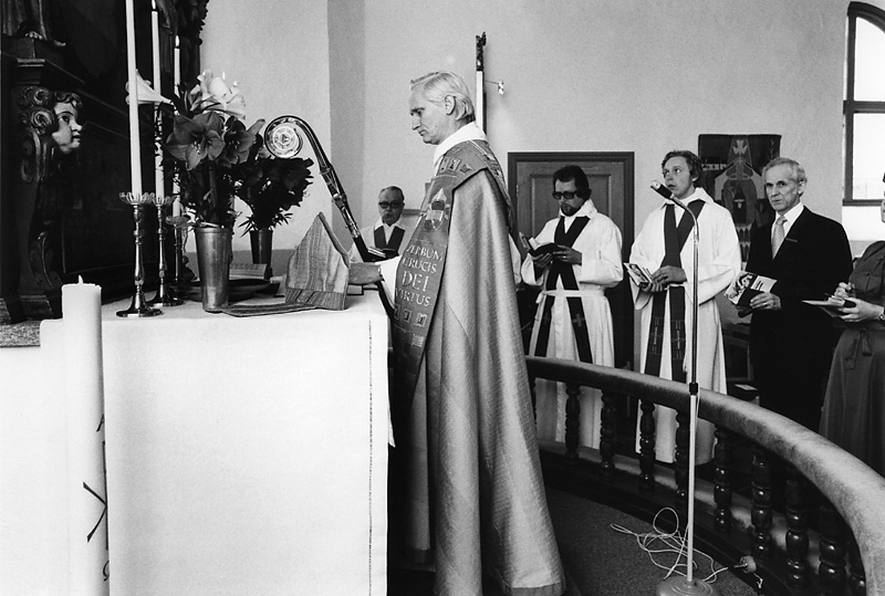 Återinvigning av Kållereds kyrka 2/5 1976. Vid altaret står Biskop Bertil Gärtner.