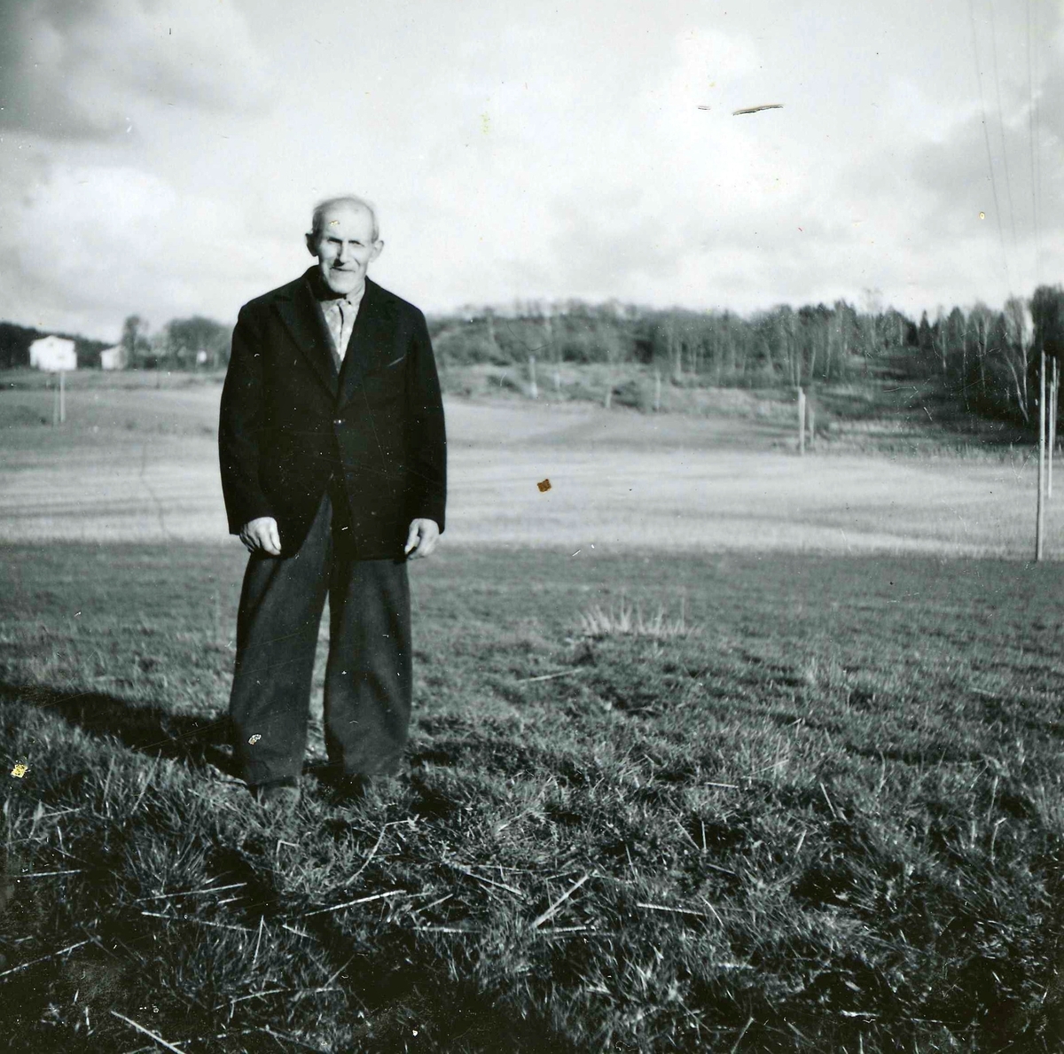 Robert Pettersson (född i Lindome 1886, avliden 1968 på Brattåshemmet) vid Ekans gård, Ekan 1:1, år 1953. Han arbetade som dräng på gården från 1912.