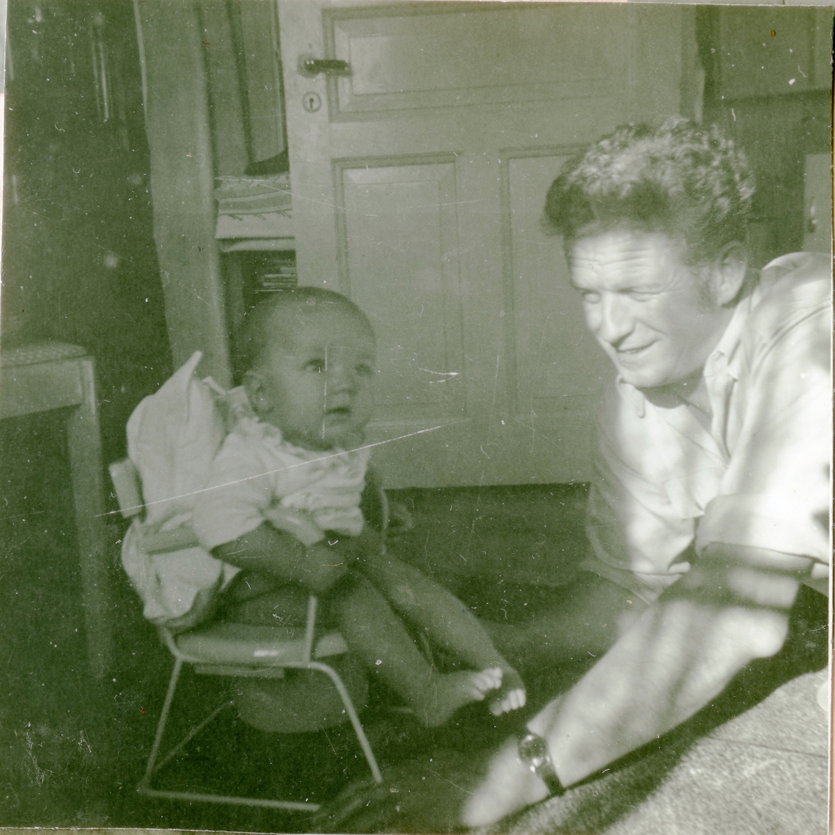 Pappa Björn Ekman (1913 - 1992), hemma från sjön, sköter potträningen av sonen Manne (född 1955). Detta sker i en hyrd lägenhet i Rothwalls hus i Kållered, troligtvis våren 1956.