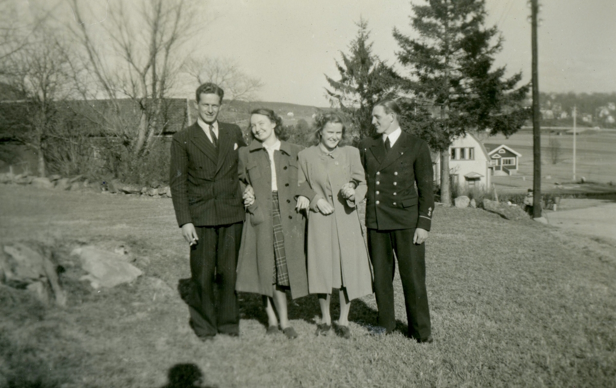 Fyra ungdomar står i Labacka vid Missionskyrkan (senare Ekenkyrkan), 1 maj 1941. Från vänster: Björn Ekman (1913 - 1992), Mary Ekdahl (1920 - 1988, gift Ekman), Nellie Gustafsson (gift Kullbring) och Eivind "Eje" Kullbring. I bakgrunden till vänster skymtar "Bölets lids" ladugård. Till höger ses bröderna Magnussons bostäder "Villa Altuna" (Heljeredsvägen 1) och "Villa Soltorp" (Heljeredsvägen 3). Relaterat motiv: A2849.