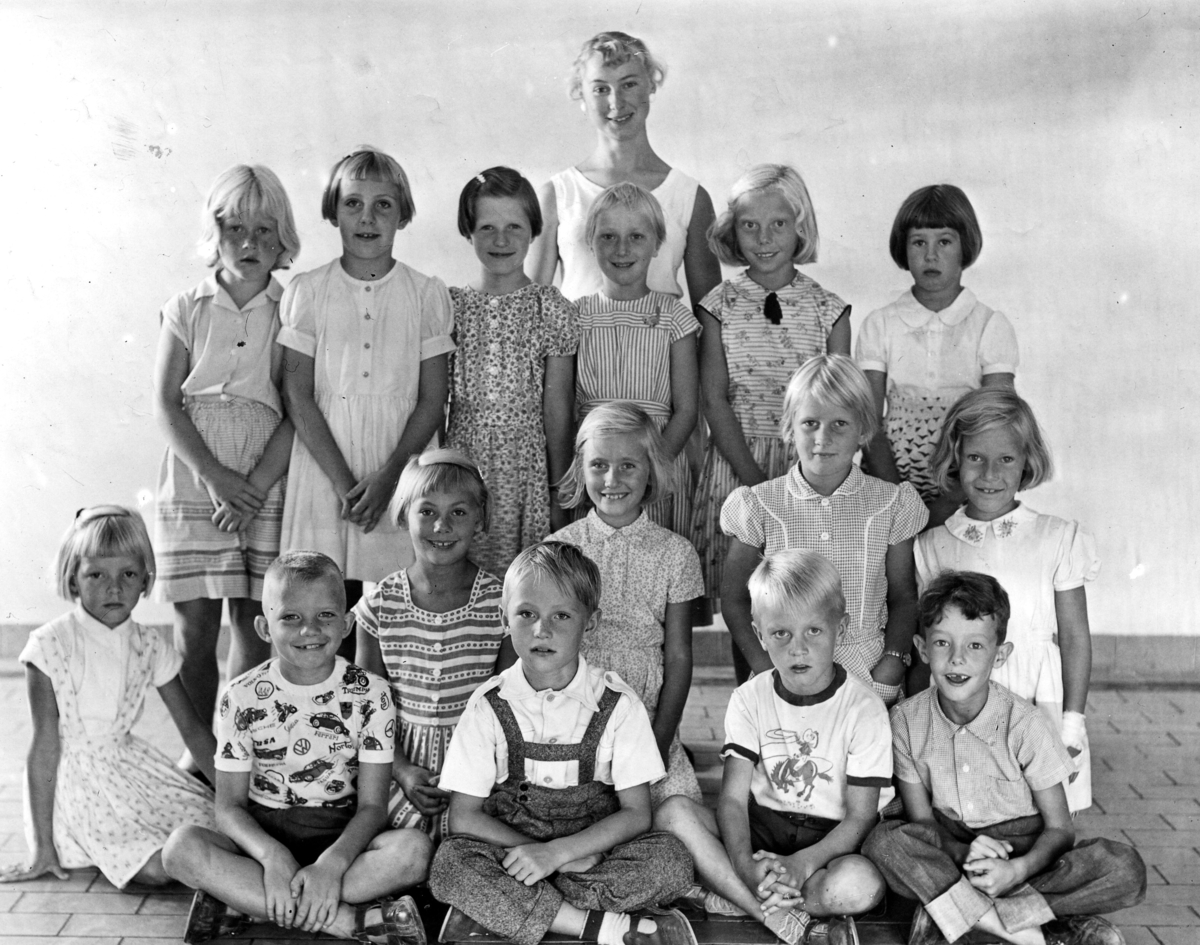 Elever i bakre ledet från vänster: 1. Angela Pettersson. 2. Isa Lyczko. 3. Ingvar Fredriksson. 4. Bodil Carlsson. 5. Karin Pettersson (gift Hansson). 6. Gurli Erwerth.