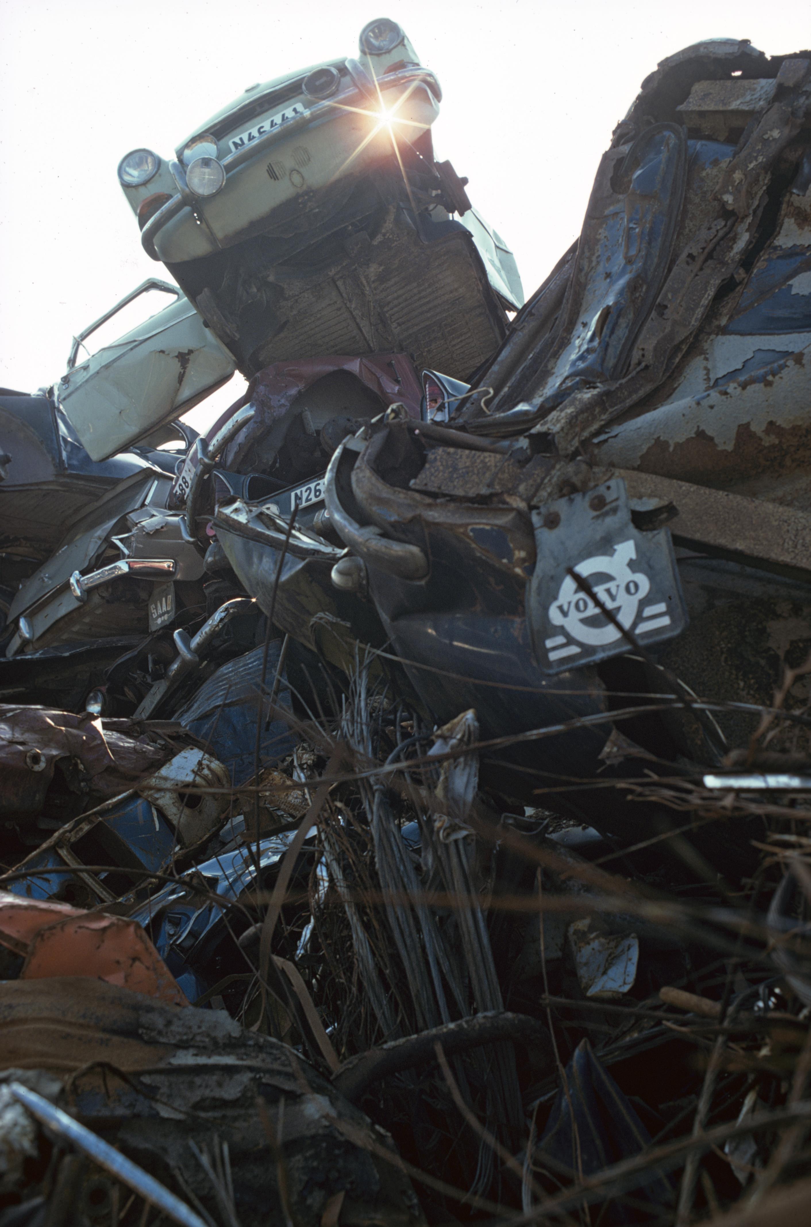 Bilskrot. Bilden troligen från mitten av 1970-talet.