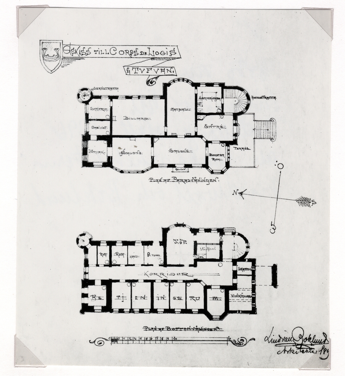 Planritning över Teleborgs slott. Den s.k. paradvåningen samt bottenvåningen.