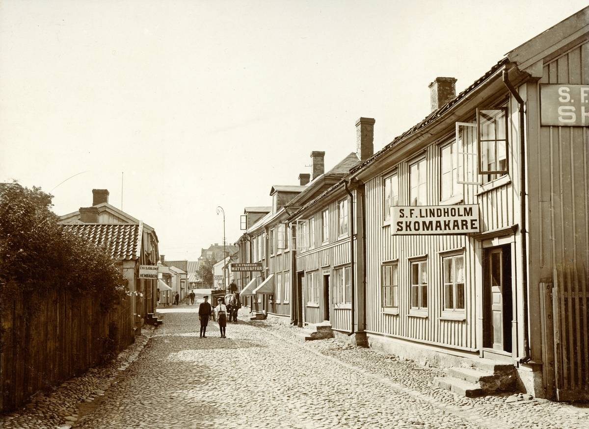 Bäckgatan mot söder, ca. 1915, Växjö. Kvarteren Blända och Stormen. Båtsmansbacken.