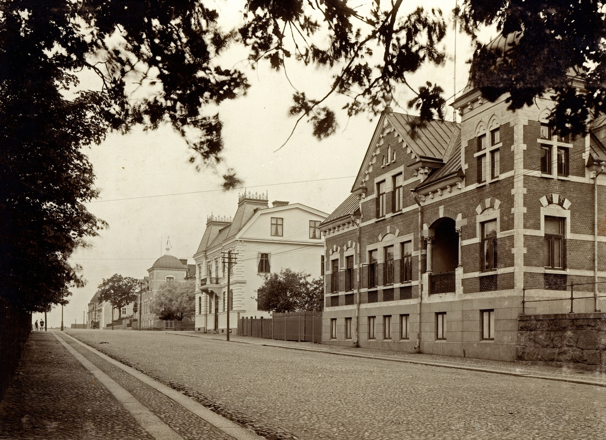 Trädgårdsgatan västerut, i höjd med kv. Vasa och Värendsgatan. Söder i Växjö ca. 1913.
