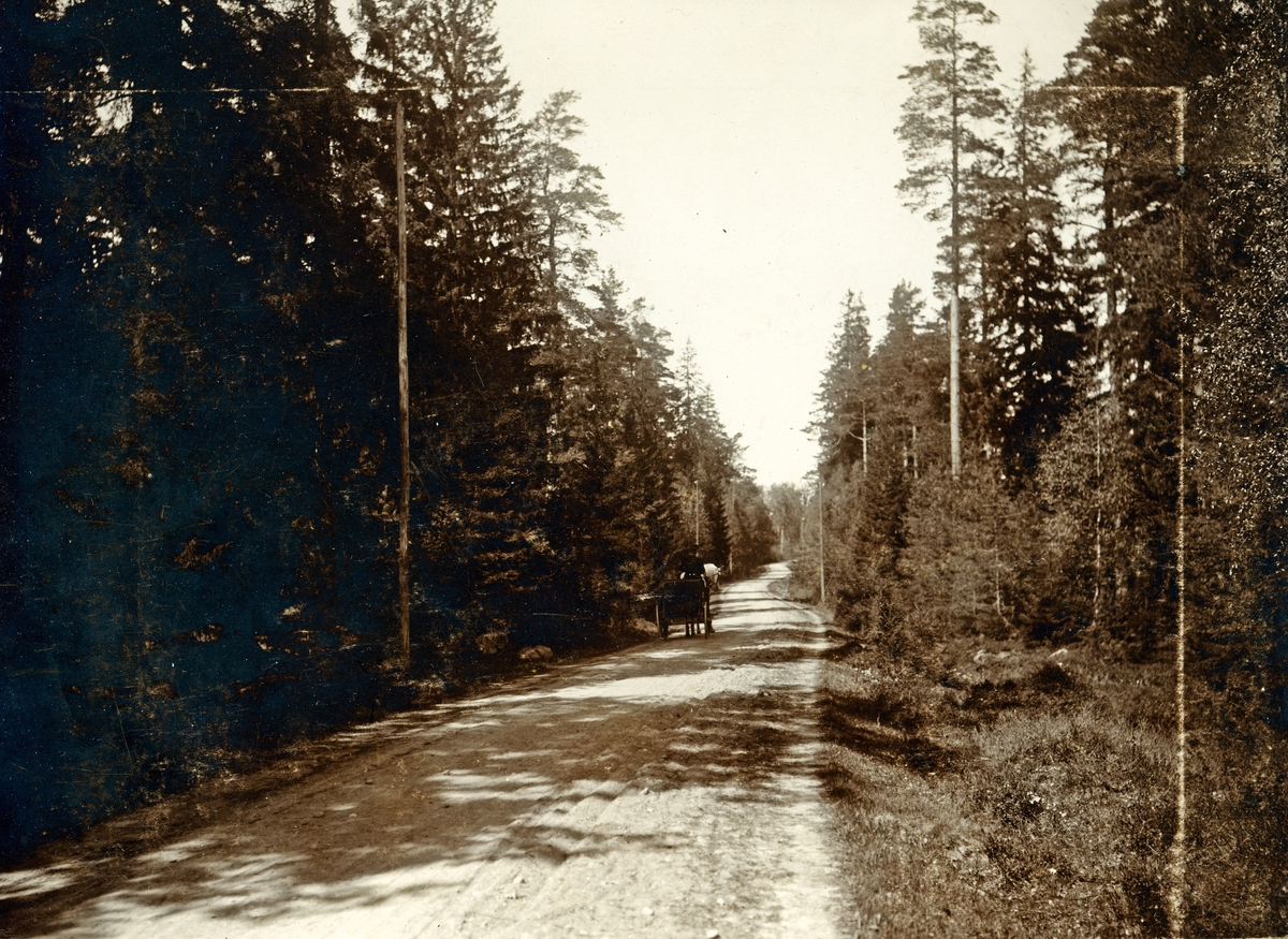 Hästskjuts på Kronobergsvägen. Ca. 1913, Växjö.