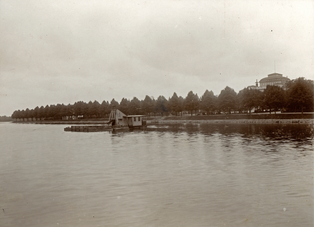 Mudderverk i Växjösjön, vid Strandvägen. Växjö, ca. 1912.