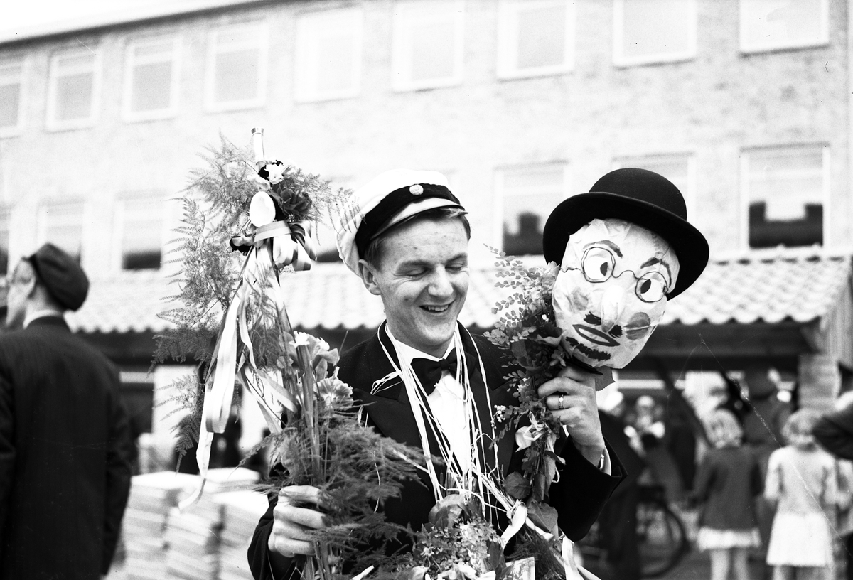 Studentexamen från Tekniska Gymnasiet. Lövad vagn. Gävle 1950.